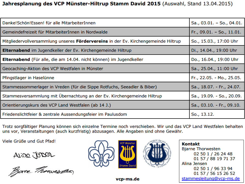 Jahresplanung 2015